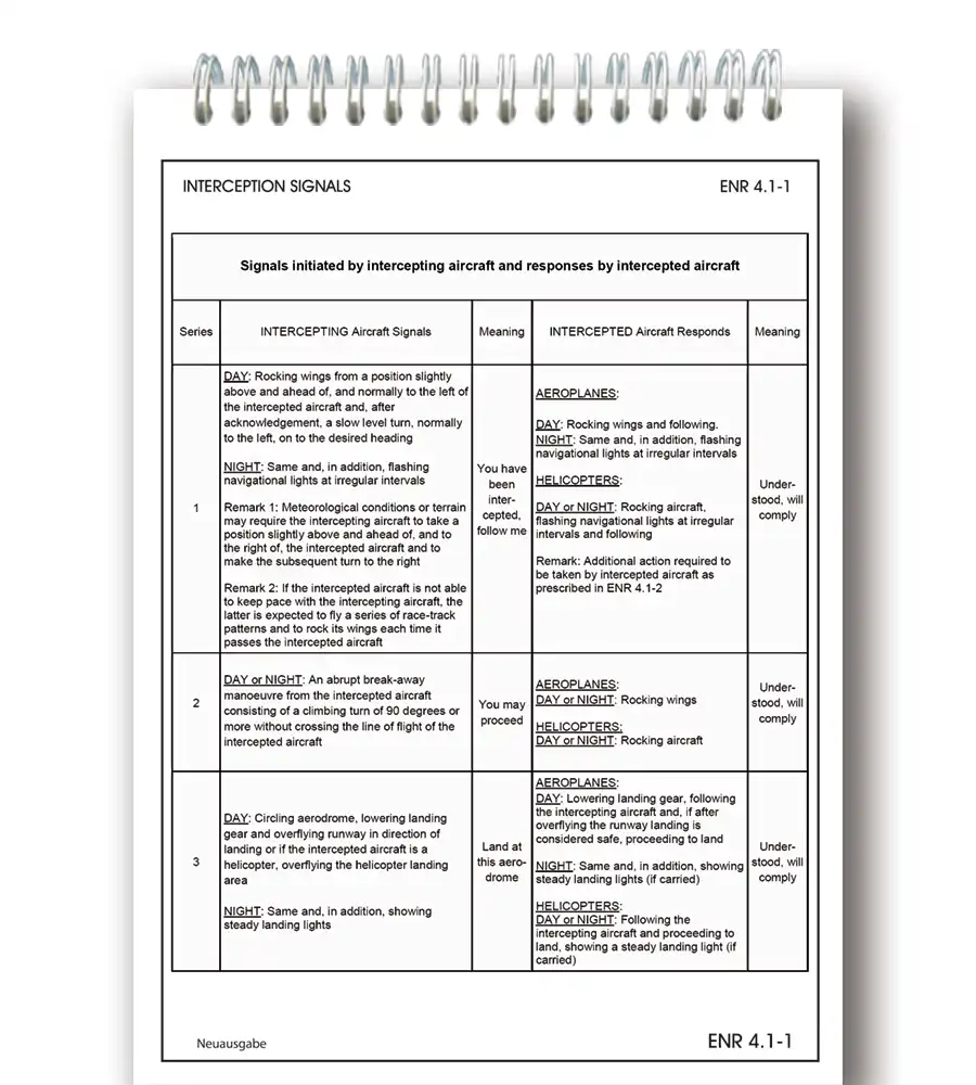 • Signaux d’interception, table de conversion, code Morse, ATC Light Gun Signals