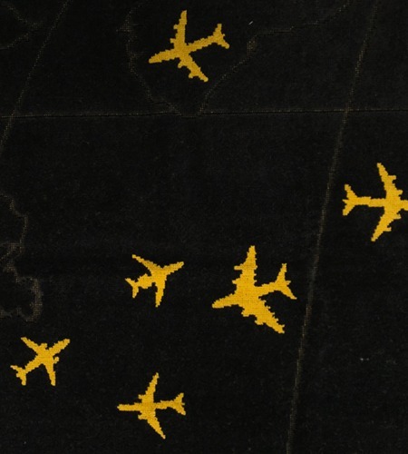 • tissage jacquard bicolore avec tissage supplémentaire en hauteur “Rogers Data” ainsi que lignes des continents
